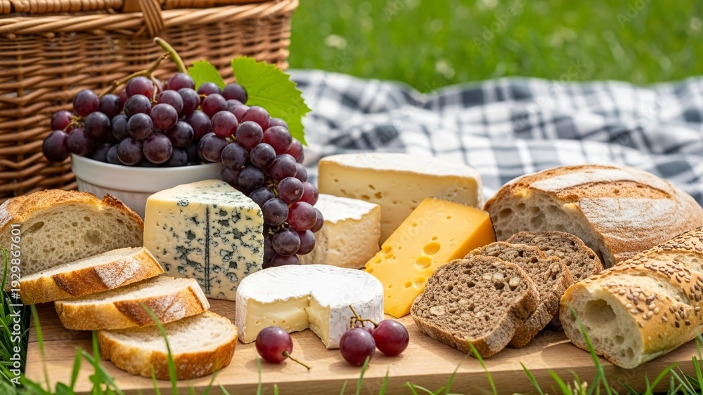 Gourmet Picnic with Cheese and Fresh Bread #1929867601