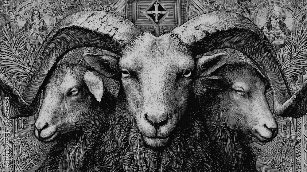 Grabado del diablo como un carnero #1752420438
