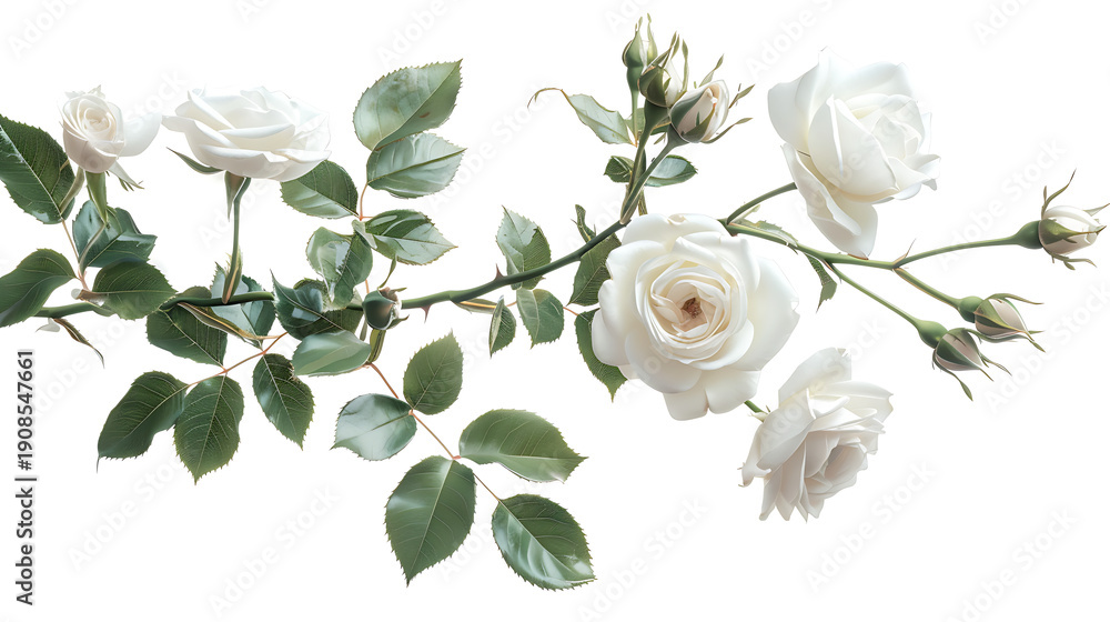 Graceful white rose bush blossoming in elegance #1908547661