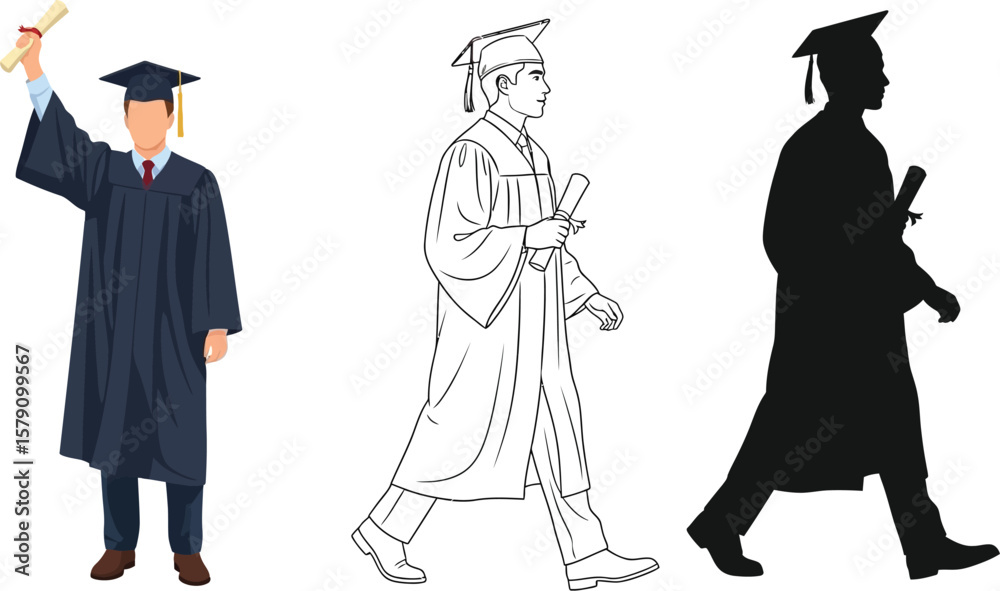 Graduation ceremony vector illustration of student with diploma in graduation gown and mortarboard cap vector #1579099567