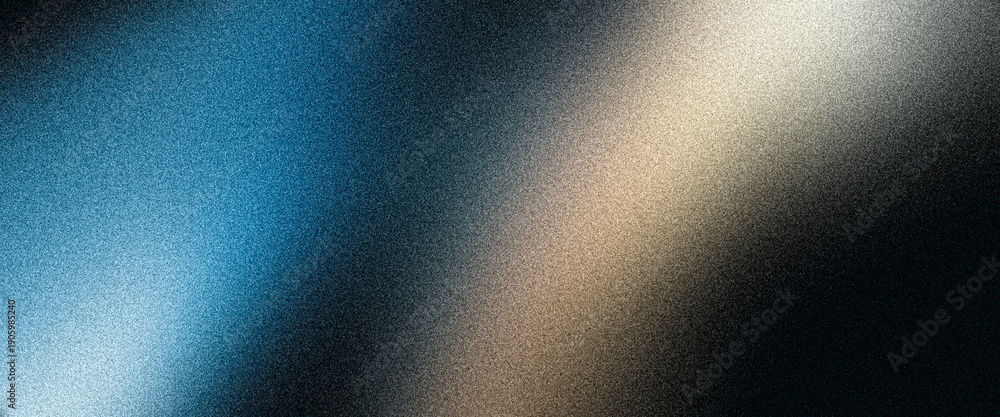 Grainy background, dark noisy color gradient, blue beige abstract glowing shape on black backdrop, wide banner poster header cover wallpaper design #1905985240