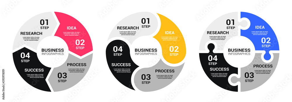Graphic Round Chart Infographic Template with a Four Steps for Success. Business Circle Template with Options for Brochure, Diagram, Workflow, Timeline, Number Options. Vector EPS 10 #393978019