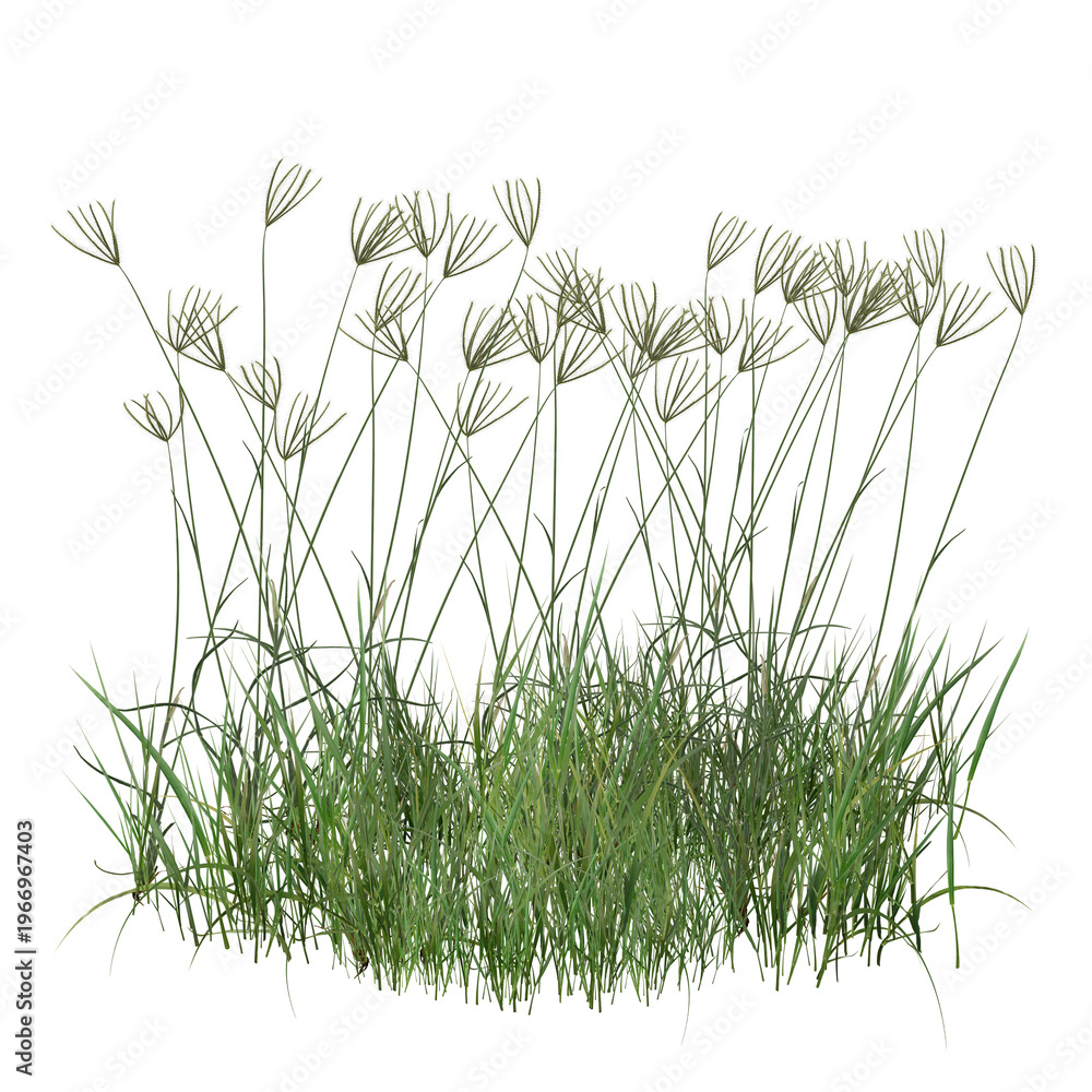 grass and flowers/Ultra-sharp isolated green grass with elegant seed heads. High-resolution botanical element for realistic architectural visualization and landscape design. #1966967403