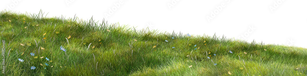 grass on a white background/Wide green meadow with wild grass and small flowers isolated on a white background, expressing natural landscape and fresh spring growth. #1866249460