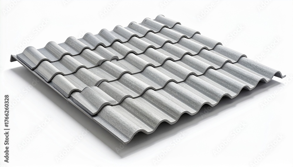 Gray corrugated roof tiles isolated on white background, perfect for construction, building materials, and architectural design concepts. #1766260328