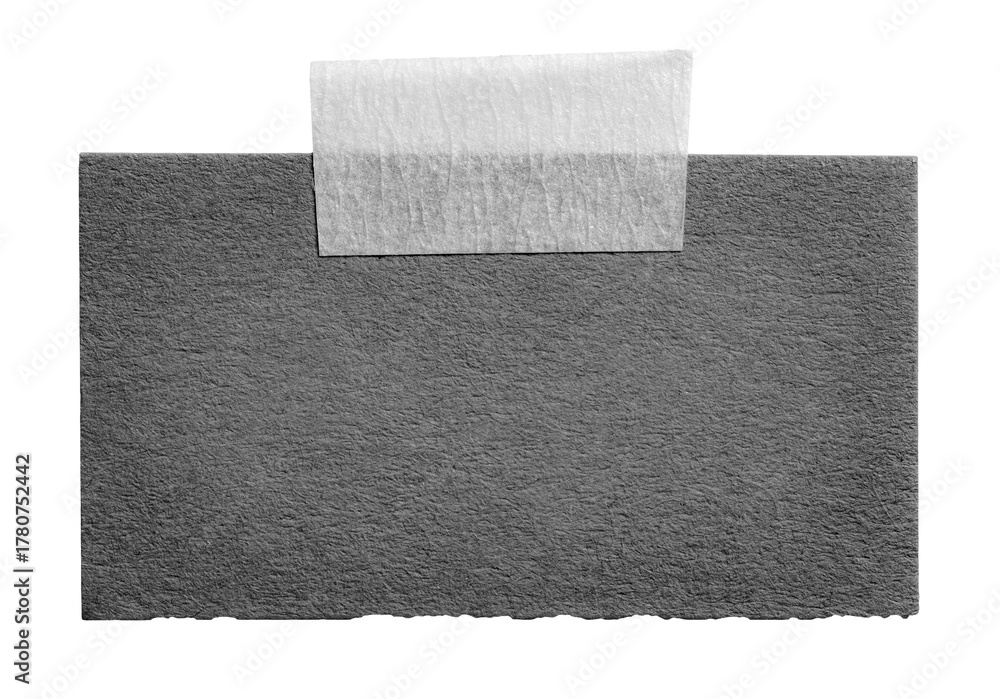 Gray paper memo note with texture and adhesive sticky tape with copy space for text, isolated transparent png background design element #1780752442