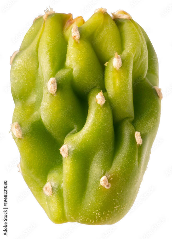 Green cactus branch with red flower buds isolated on white background, succulent plant with natural texture, minimal botanical composition #1968221030