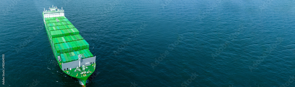 Green Cargo Container Ship, Cargo Container only green color. container ship running in the ocean to shipyard sea port. import shipping freight logistics. Concept green transportation environment #1826041110