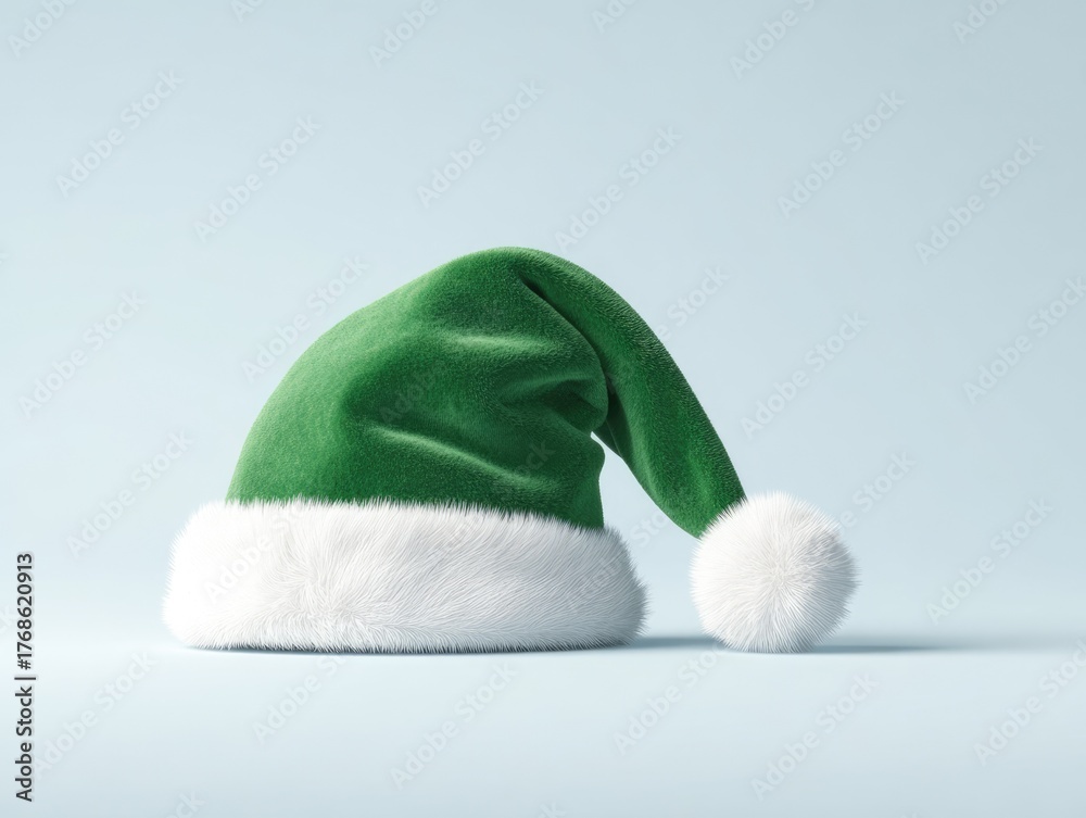 Green Christmas Santa Hat with White Fur Trim on Light Background #1768620913