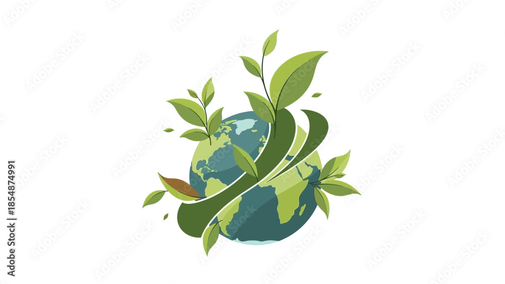 Green earth with leaves symbolizing eco friendly planet #1854874991