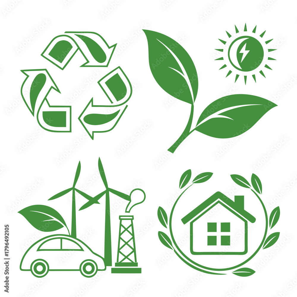 Green Energy and Ecology Icons with Nature Elements #1796492105