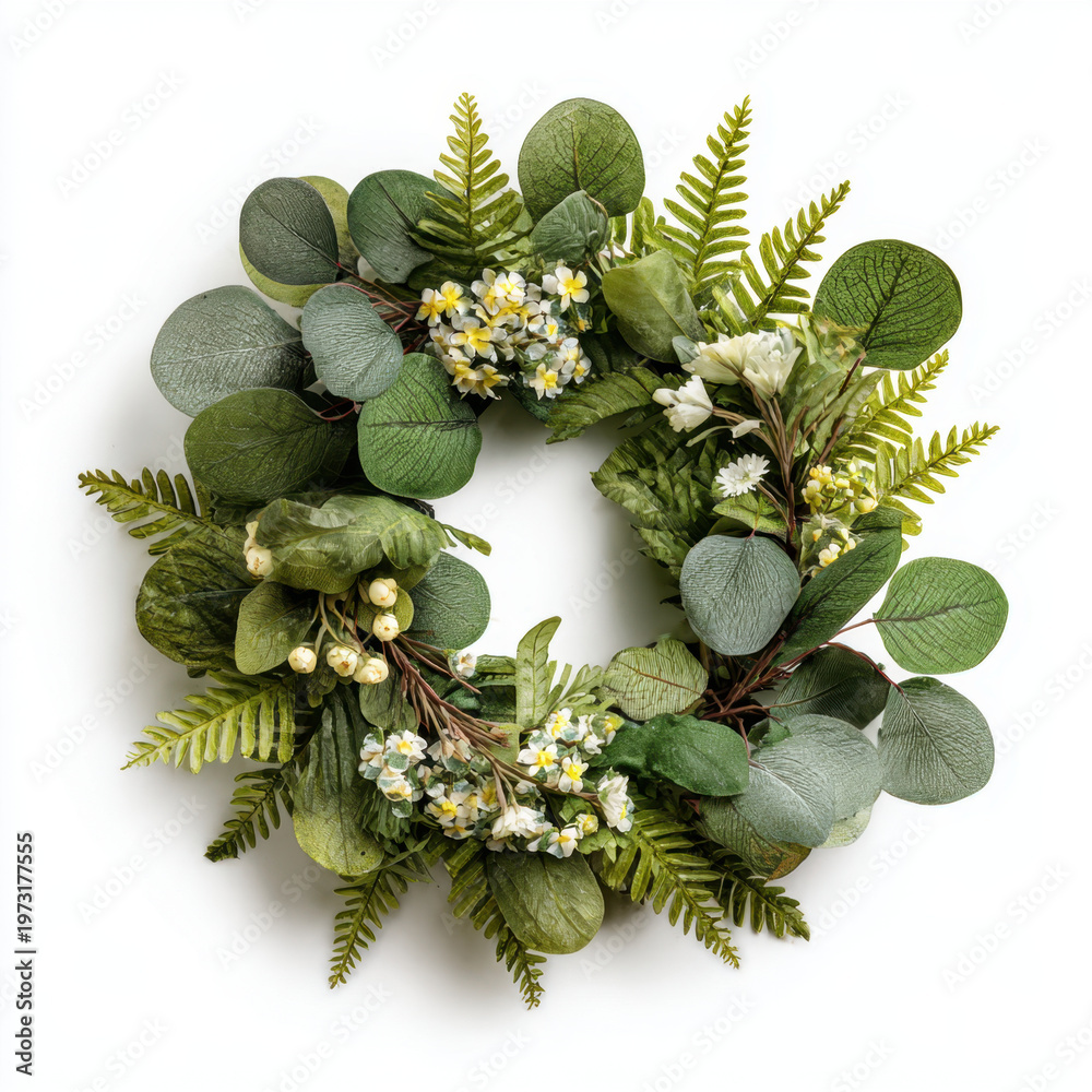Green Eucalyptus and White Wildflower Botanical Wreath on White — Wedding Stationery Use #1973177555