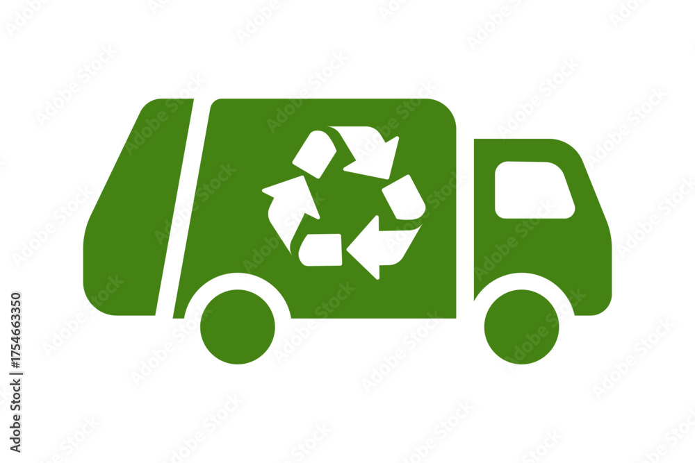 Green garbage truck icon. Simple trash truck illustration. #1754663350