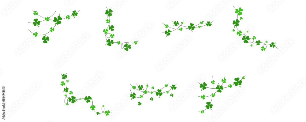 Green shamrock garland decoration corner for st patrick day. Vector isolated #1934948845