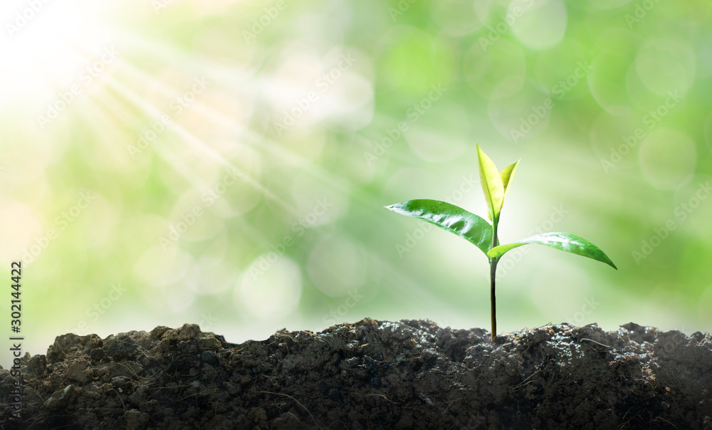 Green small tree growing memes, natural green background, bokeh concept, love the world and reduce global warming. #302144422