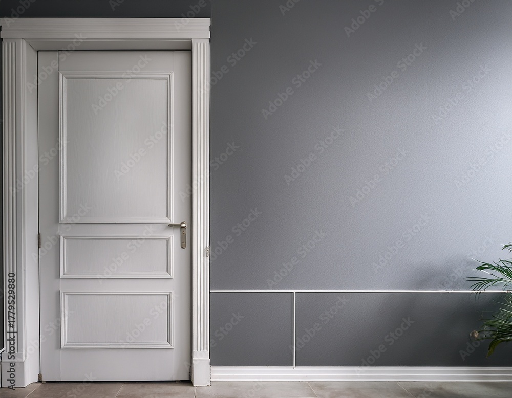 grey cabinets are placed against a wall beside a white door in a minimalistic interior modern minimalism interior design #1779529880