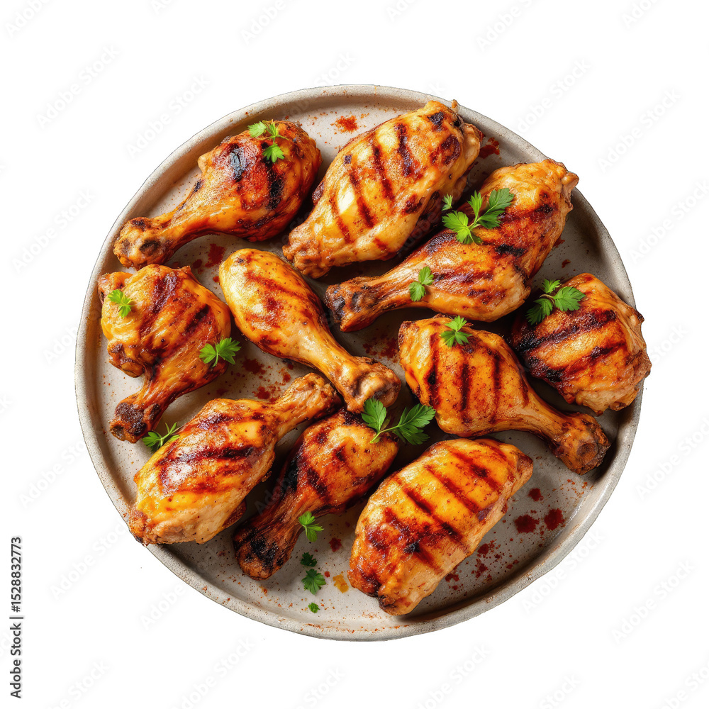 Grilled chicken drumsticks on a platter. #1528832773