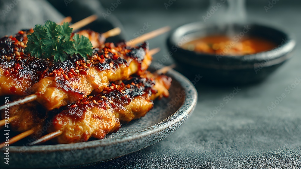 Grilled Chicken Satay with Spicy Topping and Sauce #1927972751