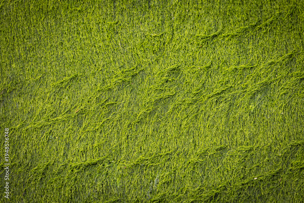 Gros plan sur des algues vertes poussant sur un rocher, pouvant servir d'arrière-plan et de texture #1948576748