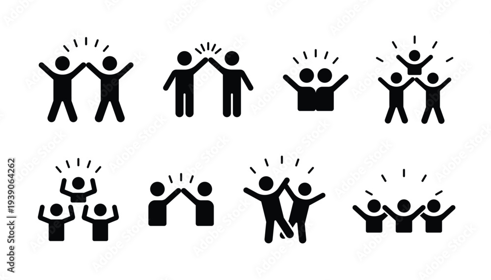 Group happy people icon set, party friends, joy expression feeling, vector illustration #1939064262