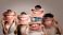 group of happy people holding a picture of a mouth smiling on a gray background #257759165