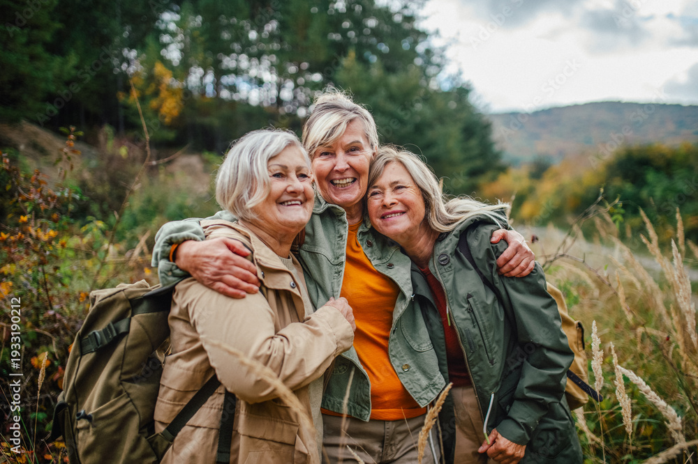 Group of mature female friends enjoying countryside walk. #1933190212
