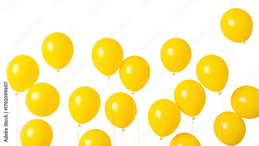 Group of yellow balloons floating on transparent background, festive celebration decoration element for parties and events. #1702099607