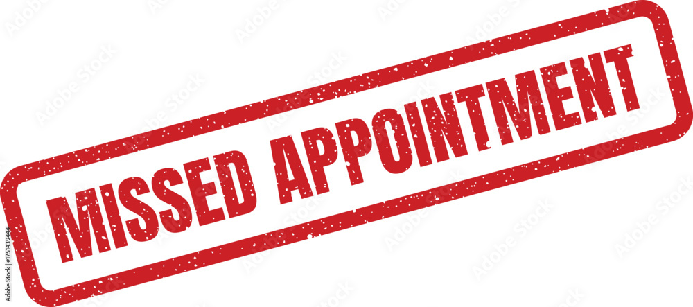Grungy red rectangular rubber stamp displaying MISSED APPOINTMENT for healthcare or service reminders #1751439444