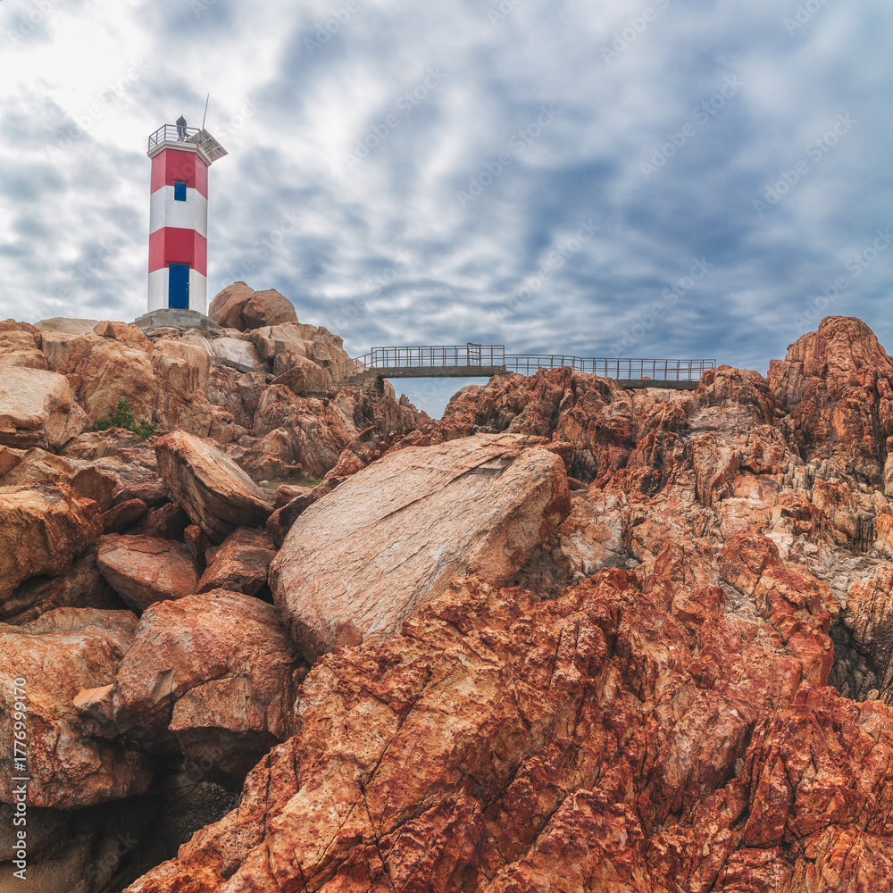 Hai Dang Ganh Den red and white lighthouse on the edge of a cliff by the sea in Phuyen Province, Vietnam #1776999170