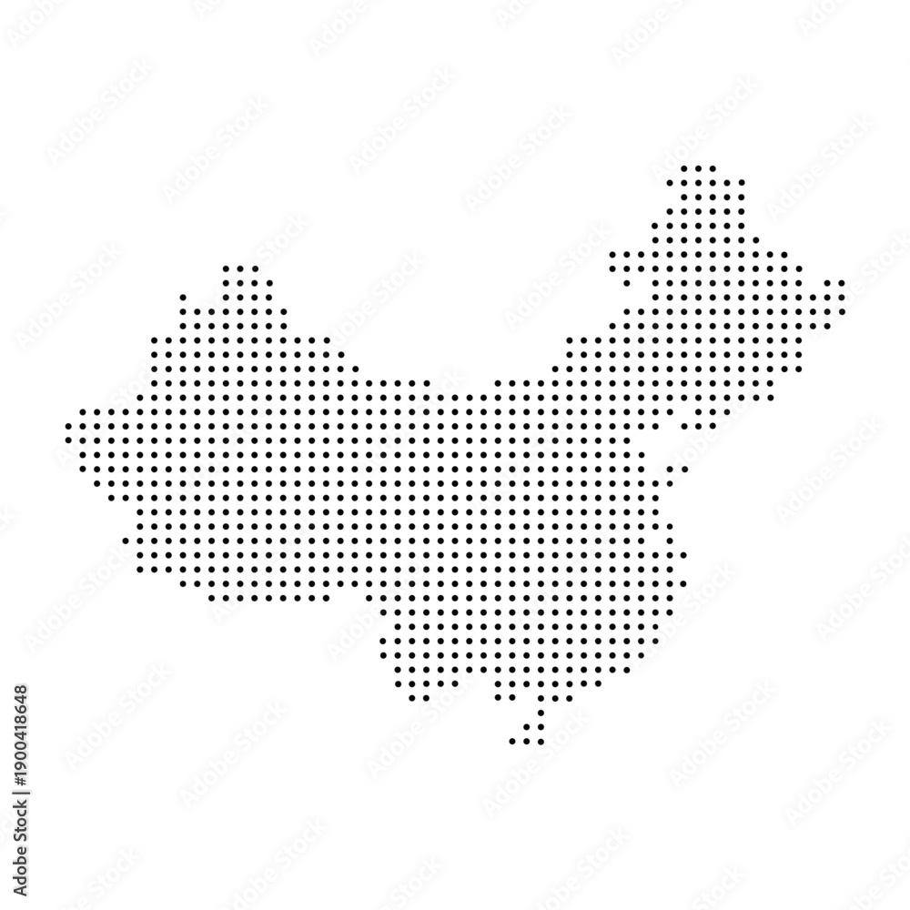 Halftone China map with dot pattern. Black and white China map digital simple travel infographics. Vector isolated concept #1900418648