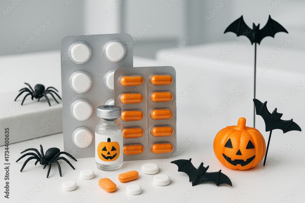 Halloween brings unique blend of healthcare and medical themes with playful elements like pumpkins and bats #1734400635