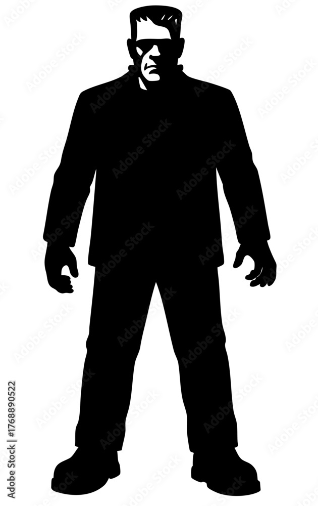 Halloween character Frankenstein’s monster silhouette, classic reanimated creature with bolts in neck and square head #1768890522