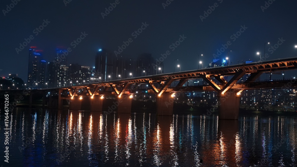 Han River bridge with city lights reflecting on the water at night #1764670265