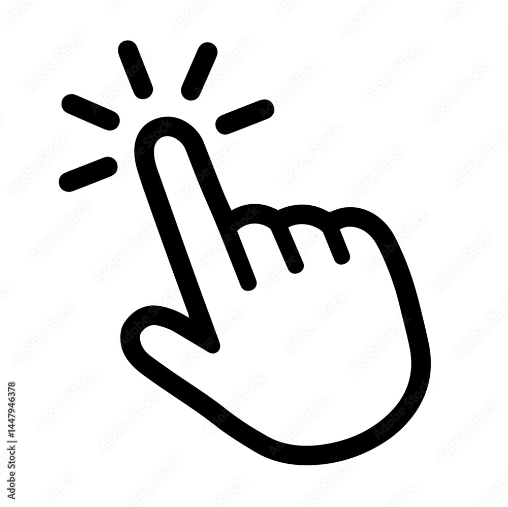 Hand cursor icon clicking with sound effect lines. #1447946378
