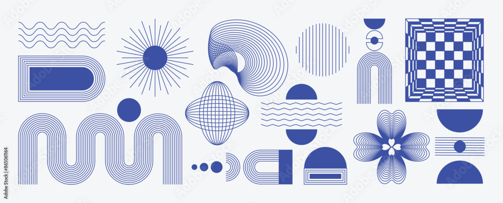 Hand drawn abstract minimal element mid century vector set. Aesthetic contemporary stripe line art, geometric shape in monochrome. Art form design for wall art, decoration, wallpaper. #865061164
