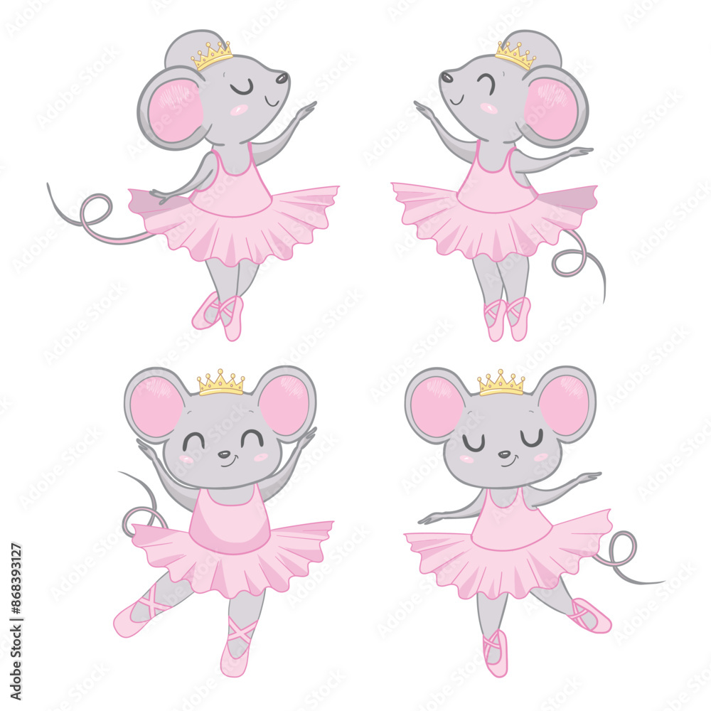 Hand drawn beautiful, lovely, little mouse ballerina girl with crown on her head. #868393127