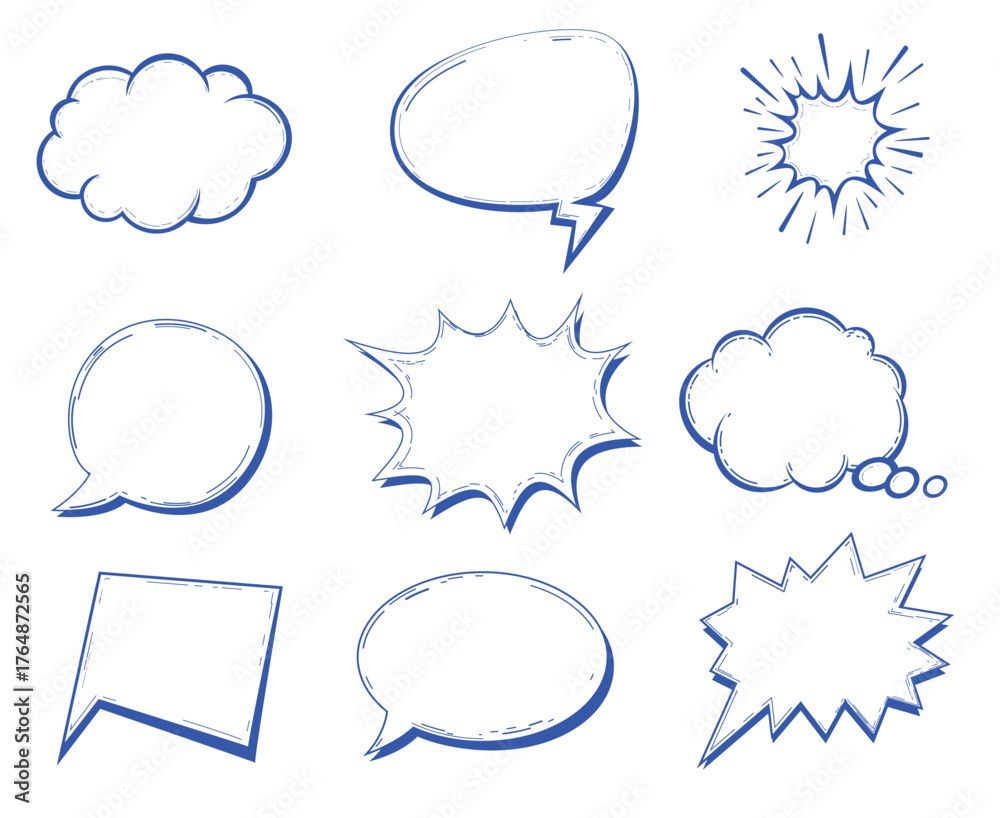 Hand Drawn Blue Comic Speech and Thought Elements Collection #1764872565