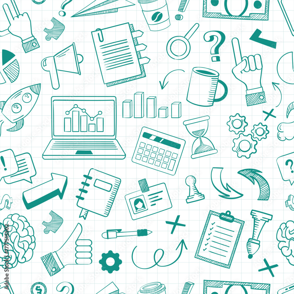 hand drawn business pattern. startup concept doodle sketch icons. vector cartoon flat seamless pattern. #1777515502