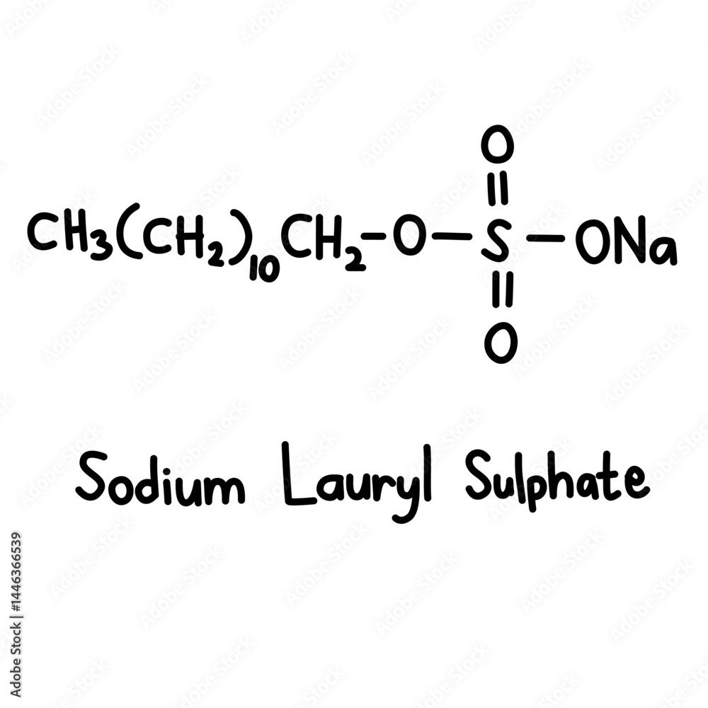 Hand drawn chemical structural formula sodium lauryl sulfate, effective surfactant of commercial cleaning product. environmental issue. #1446366539