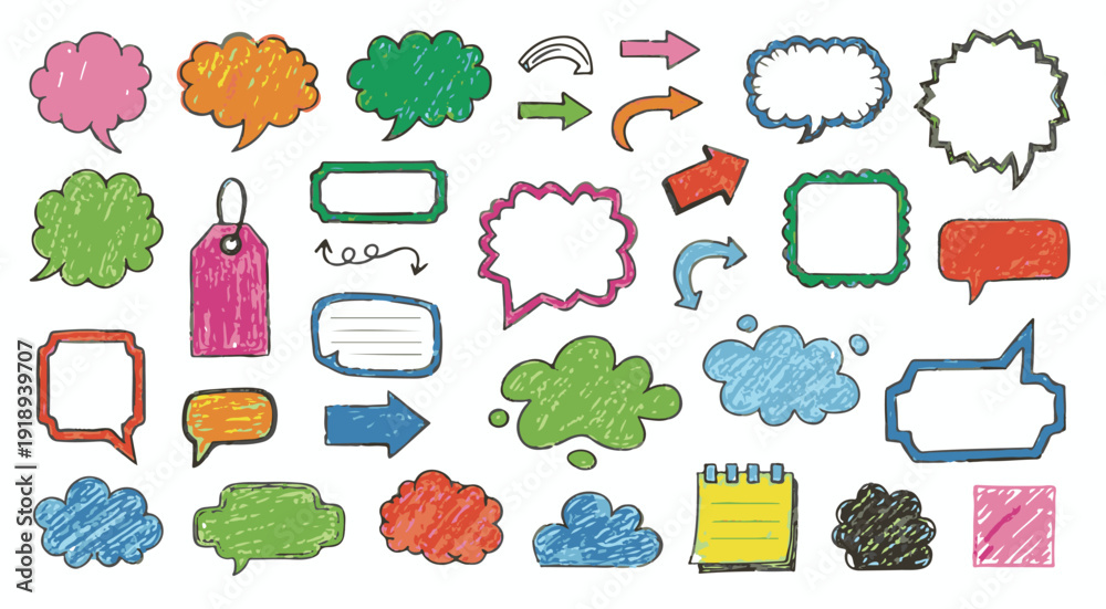 Hand Drawn Colorful Crayon Scribble Frames and Speech Bubbles Set for Scrapbooking and Kids Design #1918939707