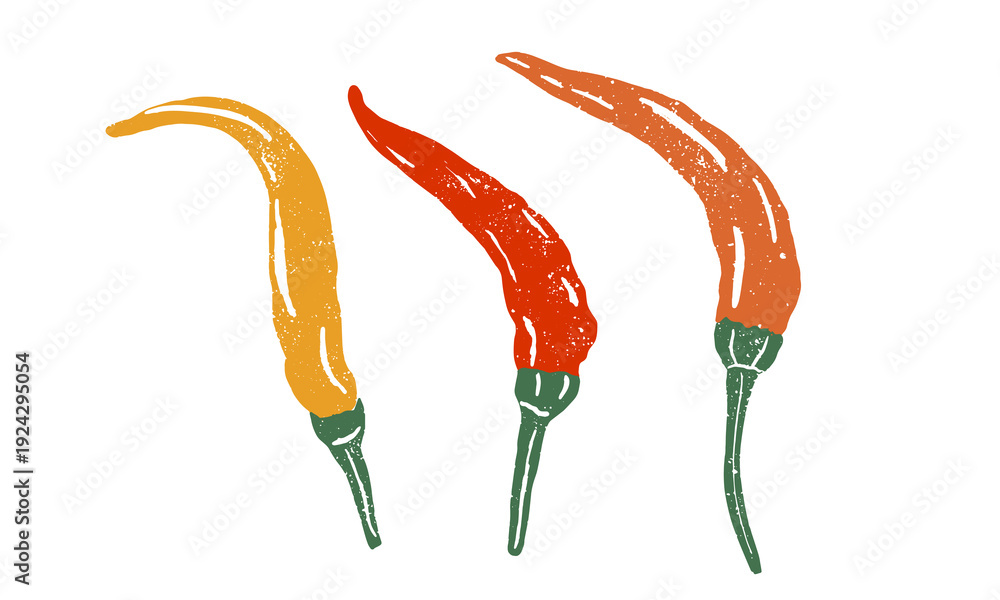 Hand drawn linocut style vegetables set. Grunge illustration of different peppers. Vector background #1924295054