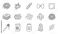 Hand-drawn set of various pasta types and Italian food icons in a black and white doodle style, including spaghetti, lasagna, ravioli, sauce, and a grater for a culinary concept #1865812873