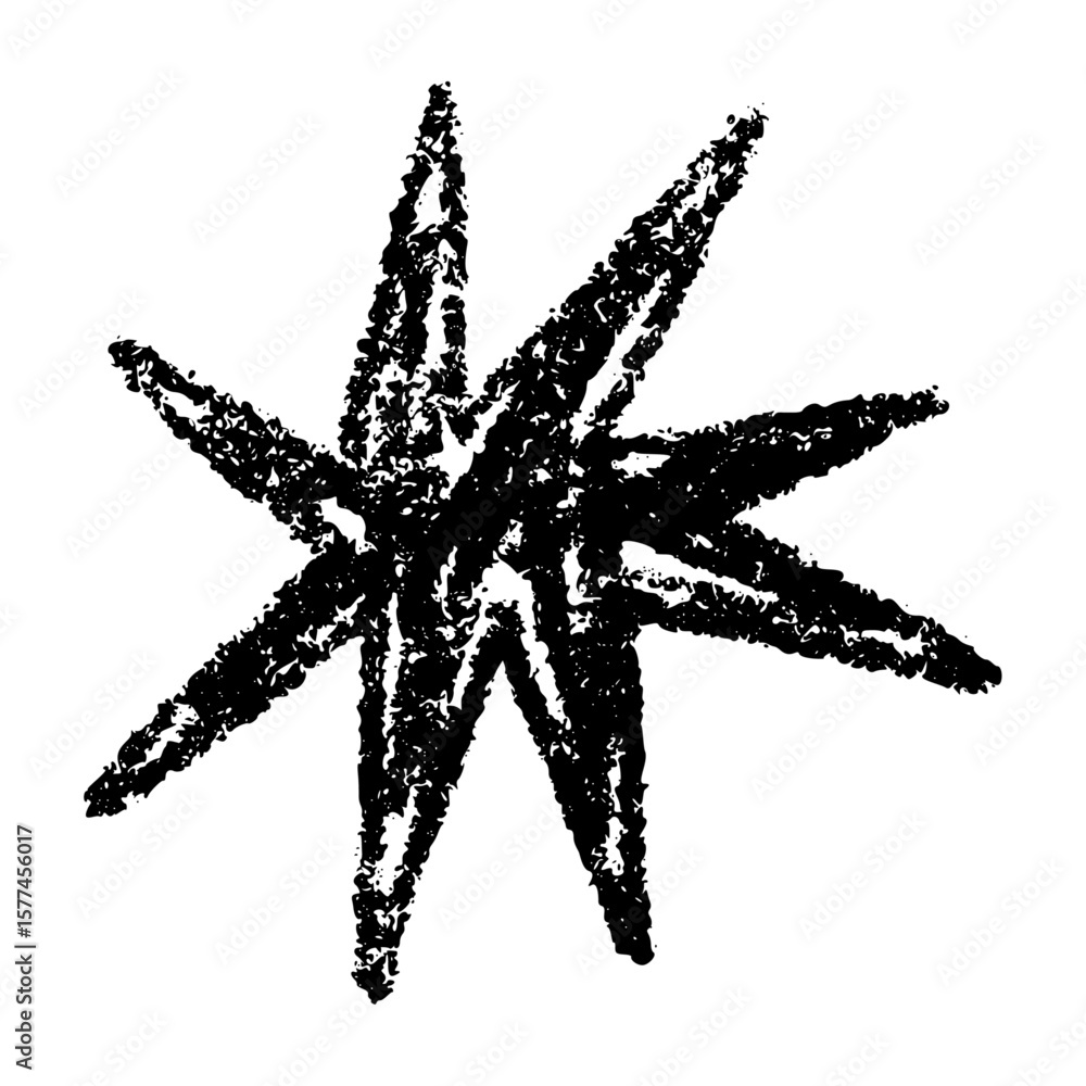 Hand-drawn star and heart icons with crayon, chalk, and scribble strokes. Playful doodle shapes for kids, music, and cartoon designs. Flat vector illustration isolated on white background. #1577456017