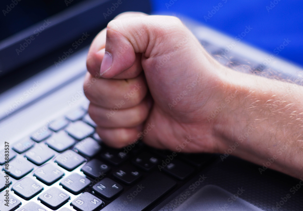 Hand Fist On The Keyboard Of Laptop #86883537