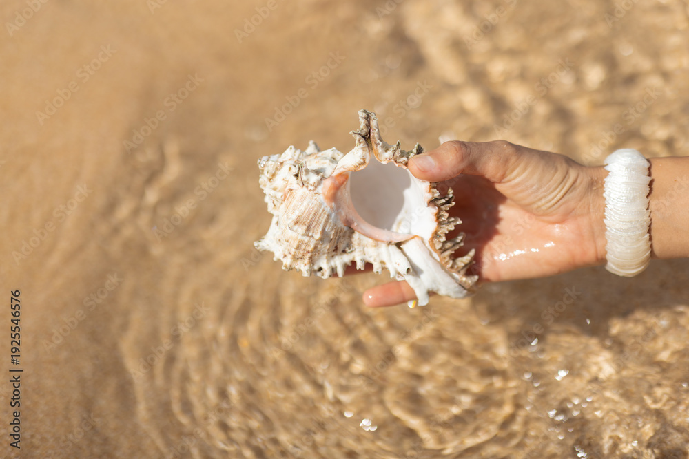 Hand Holding Murex Shell in Shallow Sea Water #1925546576