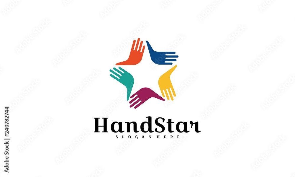 hand logo,hand star logo design template,5 sided colorful star union logo icon template concept with hands for organization company. - Vector #240782744