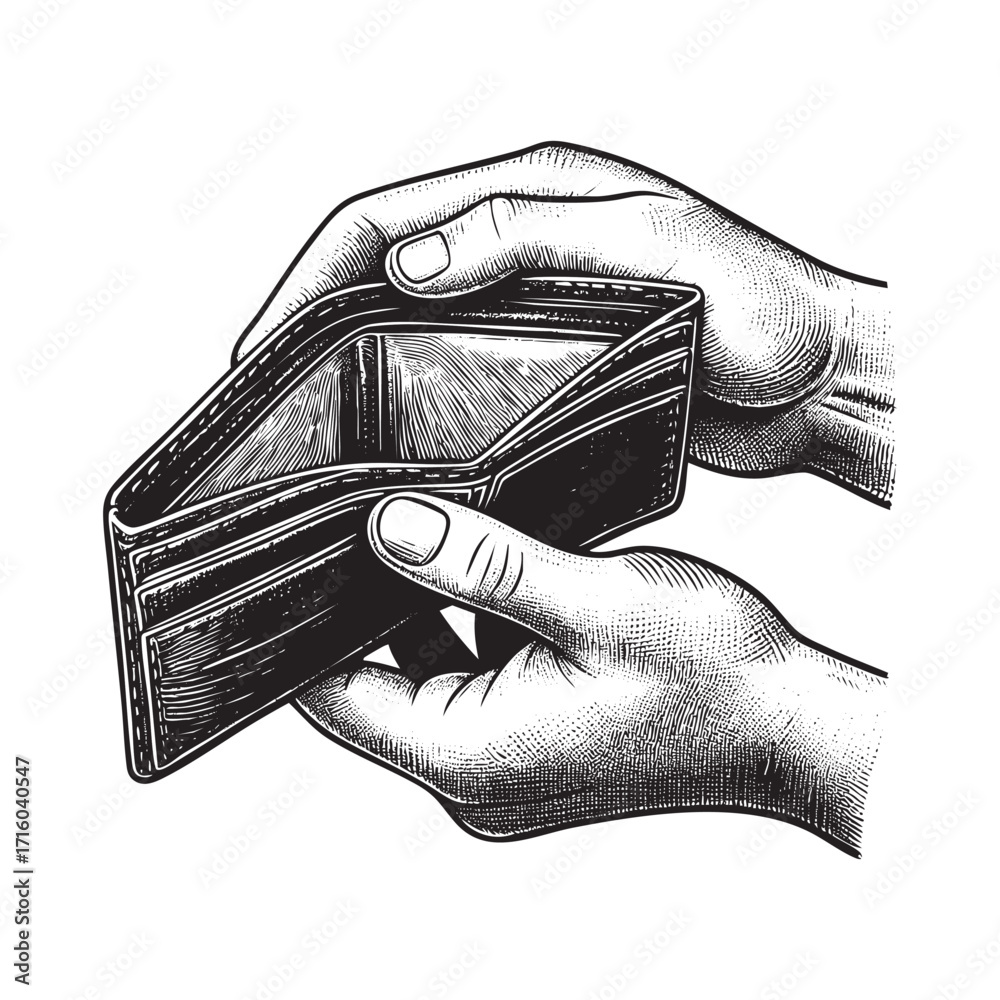 hand on empty wallet in Detailed Engraving Style Black and White #1716040547