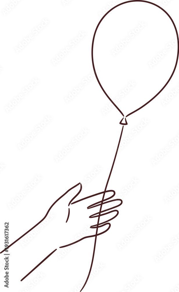 Hand releasing a balloon, letting go. Simple hand drawn black and white sketch. Minimal line art vector drawing. #1931617362
