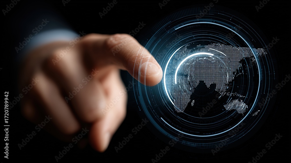 Hand Touching Digital Globe for Global Connectivity Concept #1720789942
