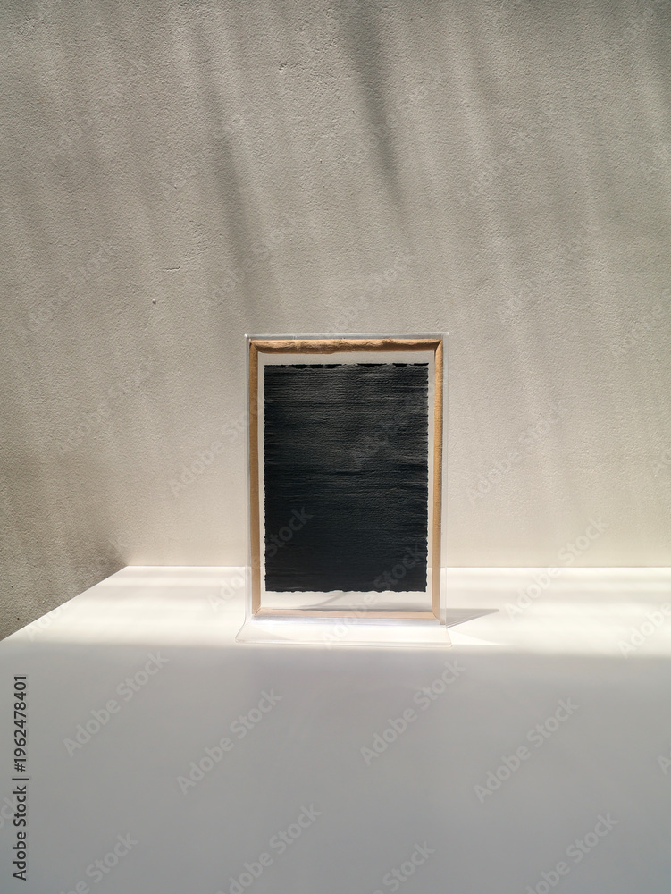 Handmade black paper in plastic frame on white table #1962478401
